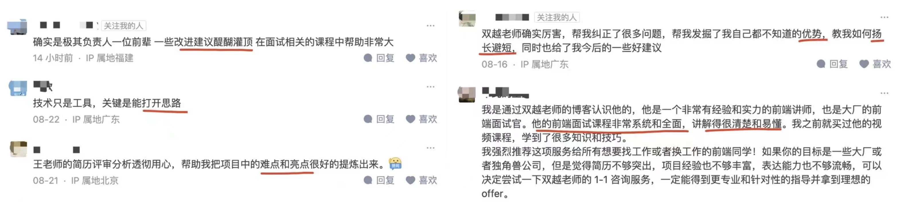 于是,我就改变了咨询方向,专门进行前端简历优化,帮助发掘个人、项目亮点。没想到效果非常好,他们给出了很好的评价,我也赚到了一些零花钱。